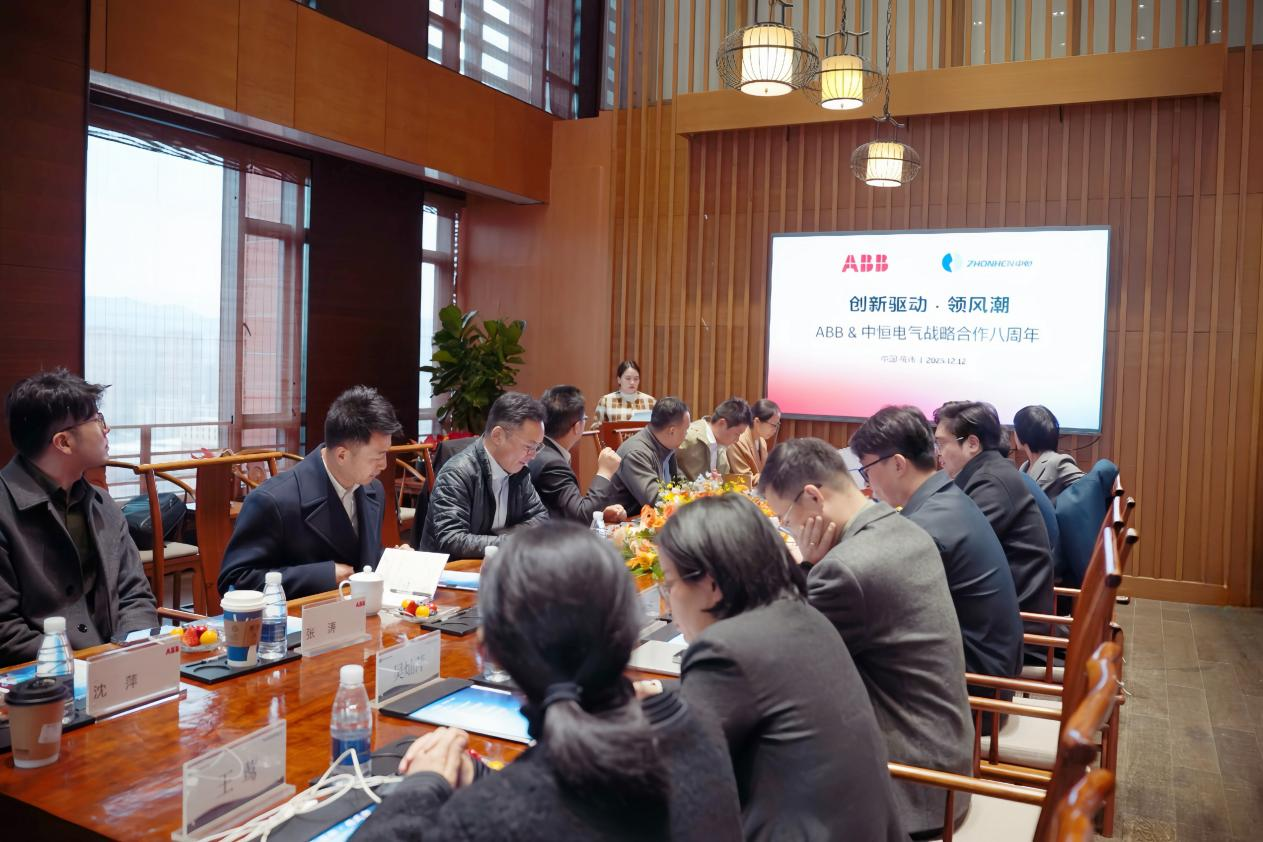 2025年12月12日下午,中国·开元(集团)股份有限公司-官方网站 (以下简称:开元)与ABB(中国)有限公司电气事业部(以下简称:ABB)在杭州开元总部举办了主题为“创新驱动·领风潮”战略合作八周年签约仪式。